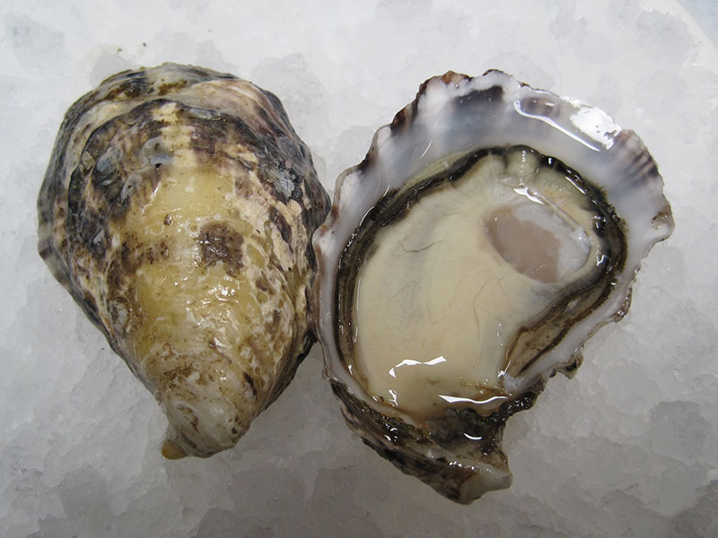 The Oishi oyster is a tide tumbled oyster from the south end of Skagit Bay in north Puget Sound. Tide tumbling is a process that is utilized to produce an oyster with a deep, mature shell and excellent meat fill. The farm transfers their seed to mesh grow-out bags when they are mature enough to leave the nursery. The bags are attached to a supported cable about 3 feet above the beach. A float is attached to the side opposite the cable to allow the tumbling process to happen. When the tide comes in, the float lifts the bag up and when it recedes, the bag drops 180 degrees to the float down position. The jostling of the oysters through this twice daily process controls the new growth of the shell, encouraging the oyster to produce a deep cup and full meat. The oysters tend to be mild in salinity, slightly sweet and have a lengthy cucumber finish.